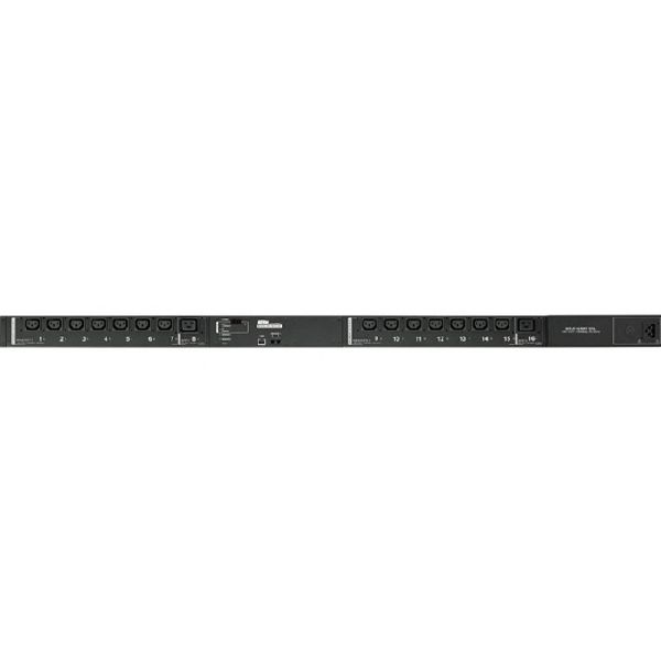 • Ausgänge: 2 Gruppen mit je 1x Kaltgerätebuchse C19 und 7x Kaltgerätebuchse C13 frontseitig, einzeln schaltbar