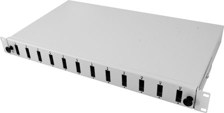 Produktinformationen "Tecline 91612 LWL Spleißbox, unbestückt, 12-fach SC Duplex Frontblende, 19", ausziehbar, hellgrau RAL 7035"