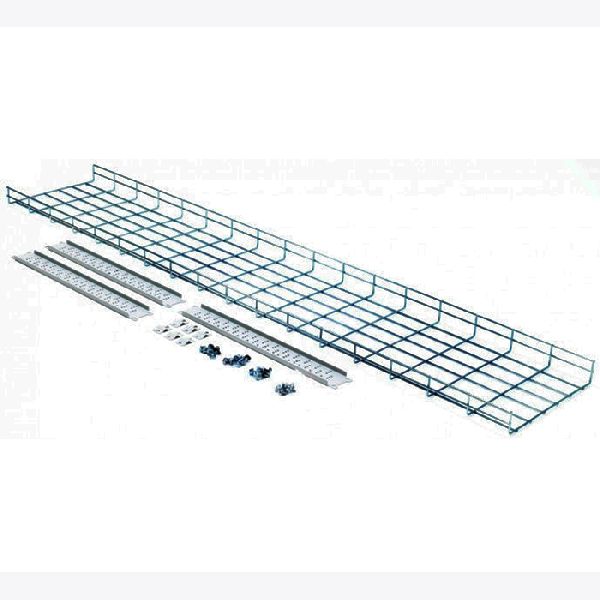 Vertikale Drahtkabelführungsrinne als Stahlgitter einschließlich Montageleisten.