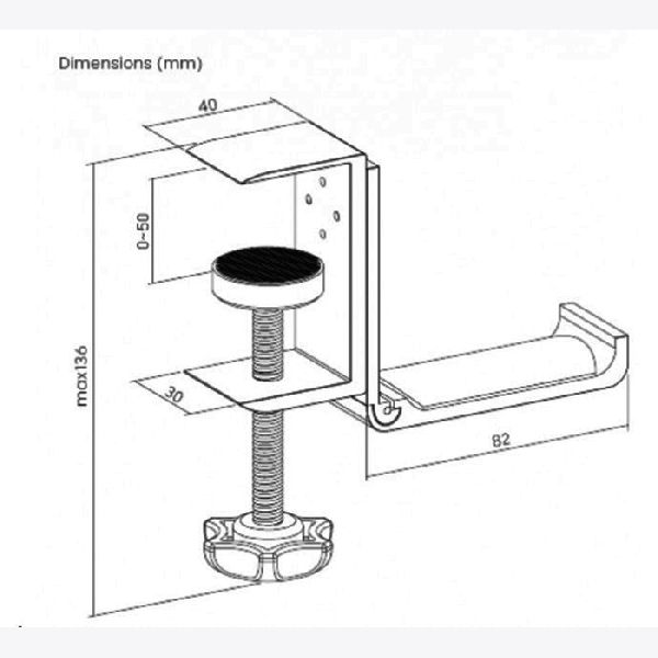 Dieser Kopfhörerhalter mit Klemme lässt sich unter dem Schreibtisch befestigen und sorgt so für Ordnung auf Ihrem Arbeitsplatz