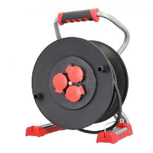 Robuste Kabeltrommel mit 3 Schutzkontakt-Steckdosen