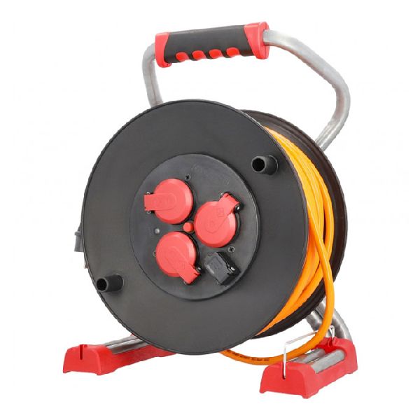 Robuste Kabeltrommel mit 3 Schutzkontakt-Steckdosen