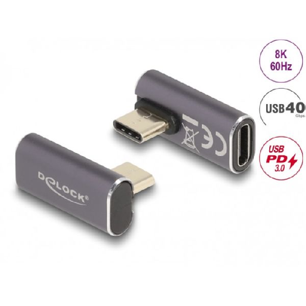 Produktinformationen "Delock 60048 DeLOCK USB-C Winkeladapter, links/rechts gedreht, 40 Gbps, PD 3.0 100 W, Metallgehäuse"