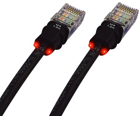 • Lichtleiter am Stecker leuchten rot, soald das Leuchtwerkzeug am anderen Stecker des Kabels angehalten wird