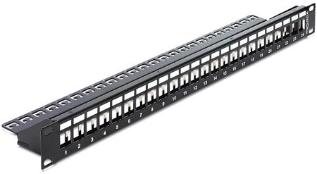 Produktinformationen "Delock 43277 DeLOCK Modulträger für 24 Keystone-Anschlussbuchsen, 19 Zoll, mit Zugentlastungsschiene, schwarz"
