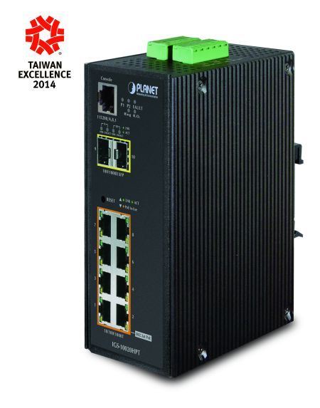 Produktinformationen "Planet IGS-10020HPT Planet Industrial Gigabit Switch IGS-10020HPT, 8 Port PoE, 2 Port SFP"