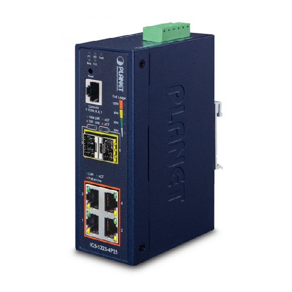 Produktinformationen "Planet IGS-5225-4P2S Planet Industrial Gigabit Switch IGS-5225-4P2S, 4 Port, POE+, 2x SFP 2,5Gbit, für Hutschienenmontage"
