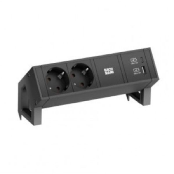 Produktinformationen "Bachmann 902.962 Bachmann DESK 2 Steckdosenleiste PURE BLACK 2 x Schutzkontakt, 1 x USB A/C, schwarz"