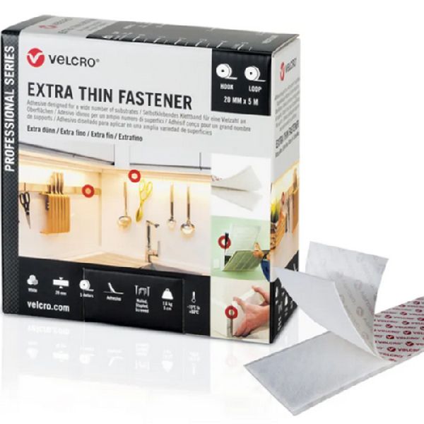 Produktinformationen "Velcro VEL-PS20019 Extra Thin Klett-Installationsband der Marke VELCRO(r), 5 m Hakenband, 5 m Flauschband, 20 mm, weiß"